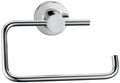 This toilet paper holder is finished with a brilliant chrome. A simple design keeps the toilet paper on the holder without the need for a spring roller.