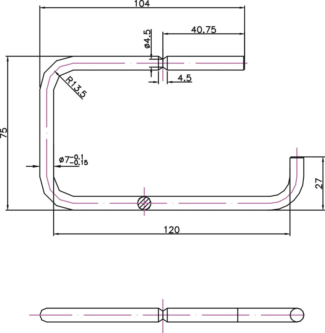 Total height of the holder is 75mm, with a total width of 120mm. The bottom end rises 27mm to keep the paper roll in place. Installation instructions and all the hardware you need are included.