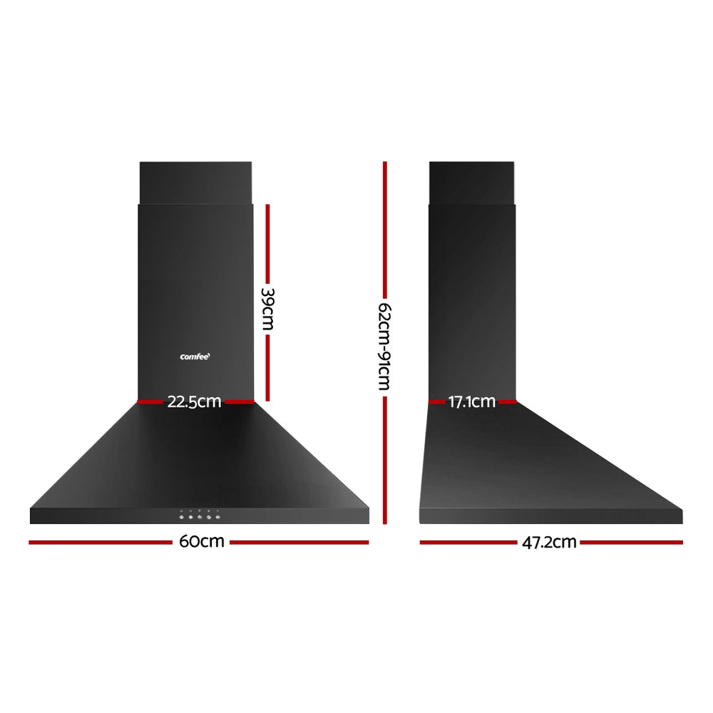 Comfee Rangehood 600mm Range Hood Home Kitchen Wall Mount Canopy 60cm Black
