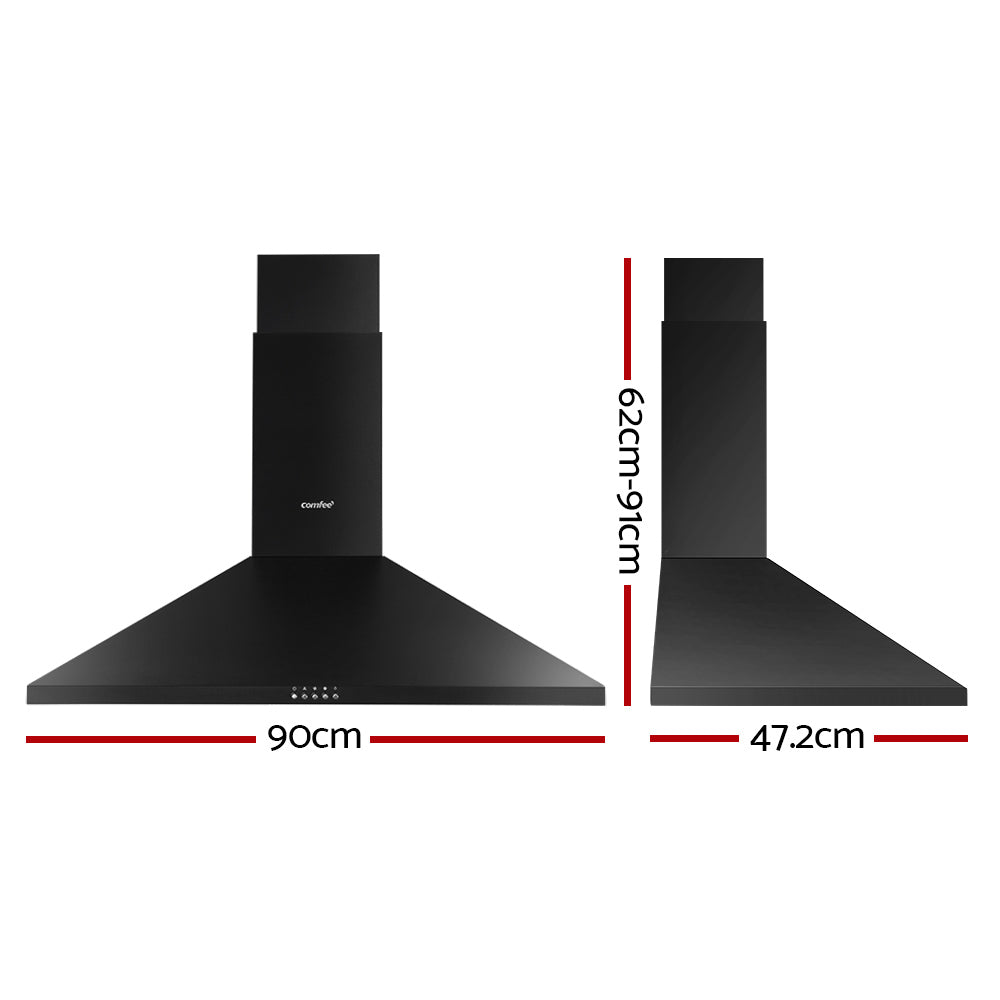 Comfee Rangehood 900mm Range Hood Home Kitchen Wall Mount Canopy 90cm Black