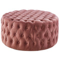 Cosmos Tufted Velvet Fabric Round Ottoman Footstools - Rose Pink