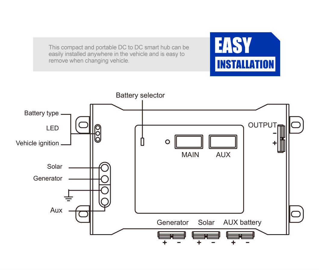 Easy Installation: This compact and portable DC to DC smart hub can be easily installed anywhere in the vehicle and is easy to remove when changing vehicle.