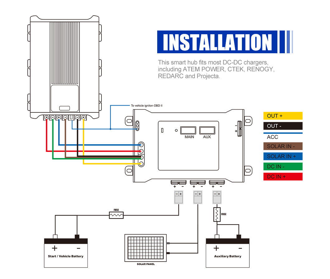 Universal Fitment: This smart hub fits most DC-DC chargers, including ATEM POWER, CTEK, RENOGY, REDARC and Projecta.