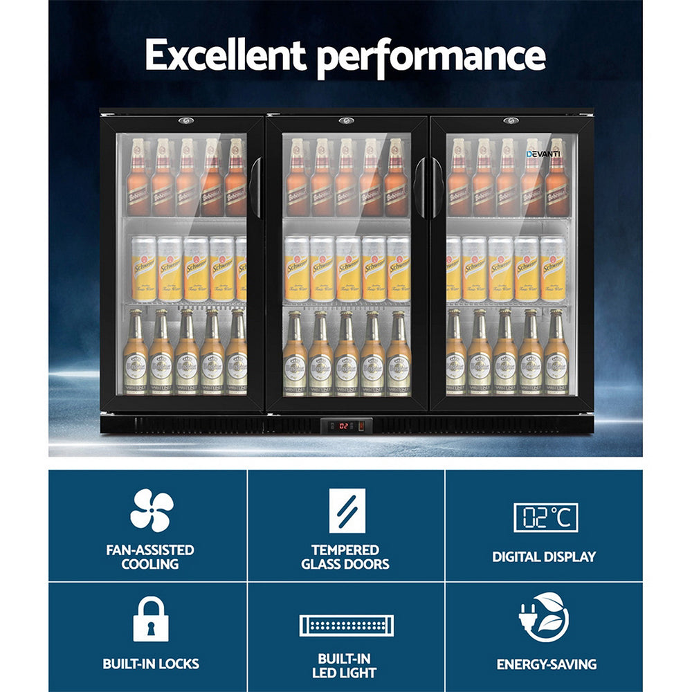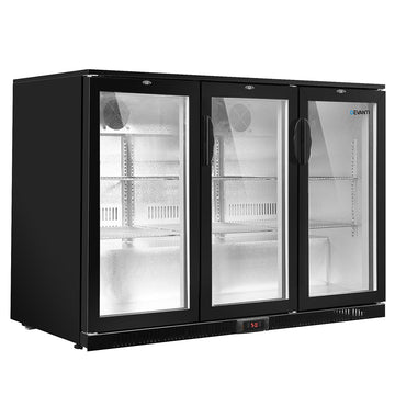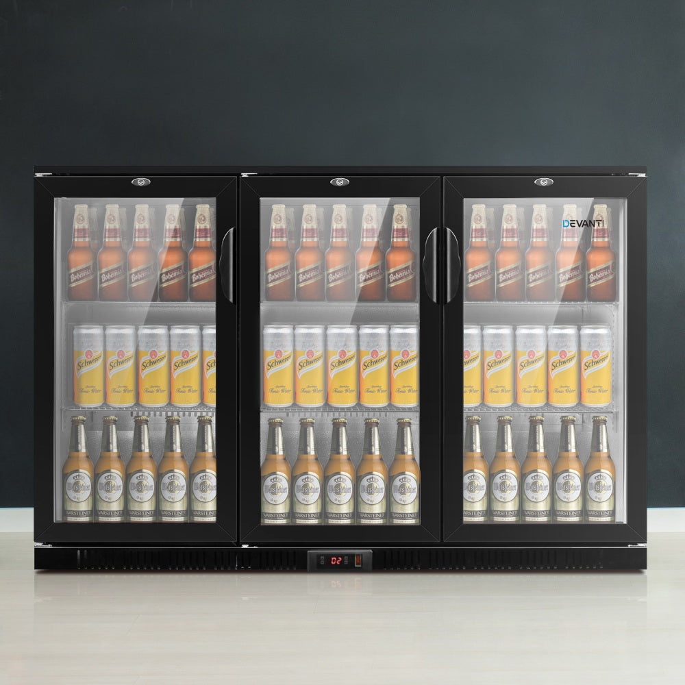 Devanti Bar Fridge 3 Glass Door Commercial Display Freeer Drink Beverage Cooler Black