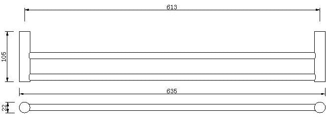 Double Towel Rail Grade 304 Stainless Steel 635mm