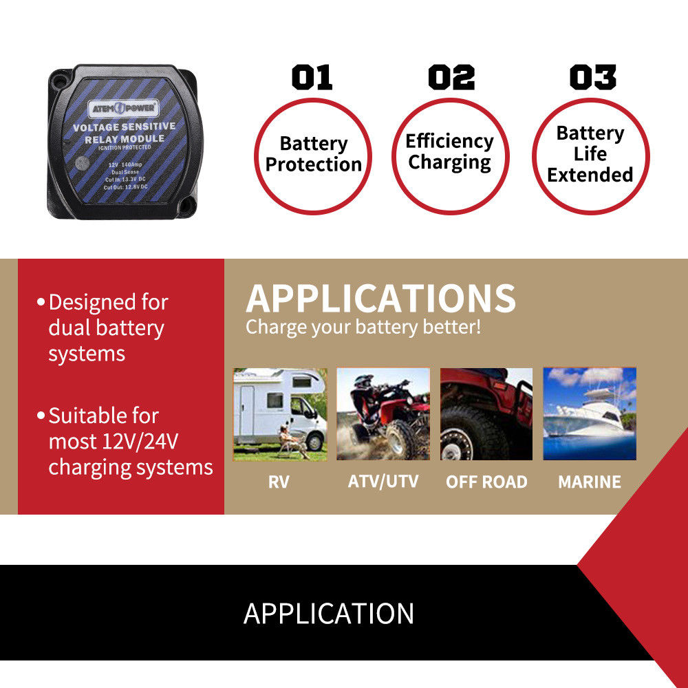 Dual Battery Isolator 12V 140 Amp VSR Voltage Sensitive Relay 4WD Camper Camping
