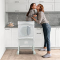 EKKIO Folding Kitchen Kids Step Stool with Chalkboard- Saturn, Moon, Square and Star Shape Design (White)