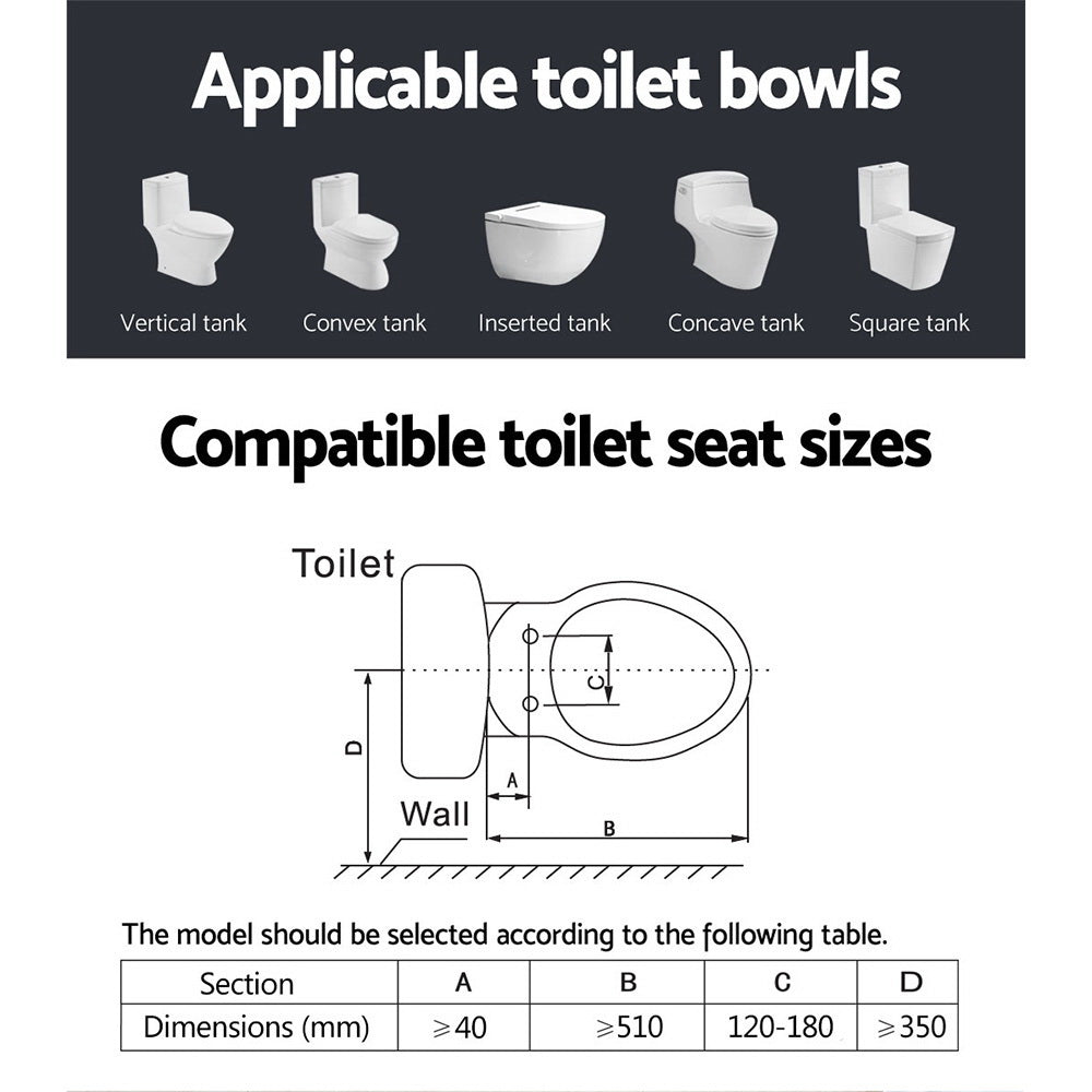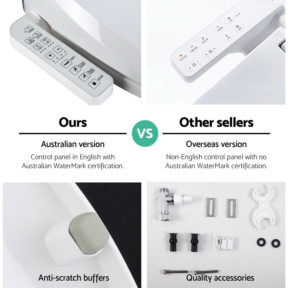 Our electric bidet, unlike many others on the market, is certified for use in Australia with an easy-to-use built-in control panel that is written in English. The smart bidet does everything for you, so you do not have to do a thing. It heats up the seat to four temperatures, washes you in multiple washing modes with adjustable water pressure levels at four water temperatures, then dries your bottom with four warm air temperatures. It even cleans itself with its self-cleaning twin nozzles. Installing the bidet is easy with no plumber needed. So begin a fresh approach to personal hygiene with our exceptionally safe and reliable electric bidet.