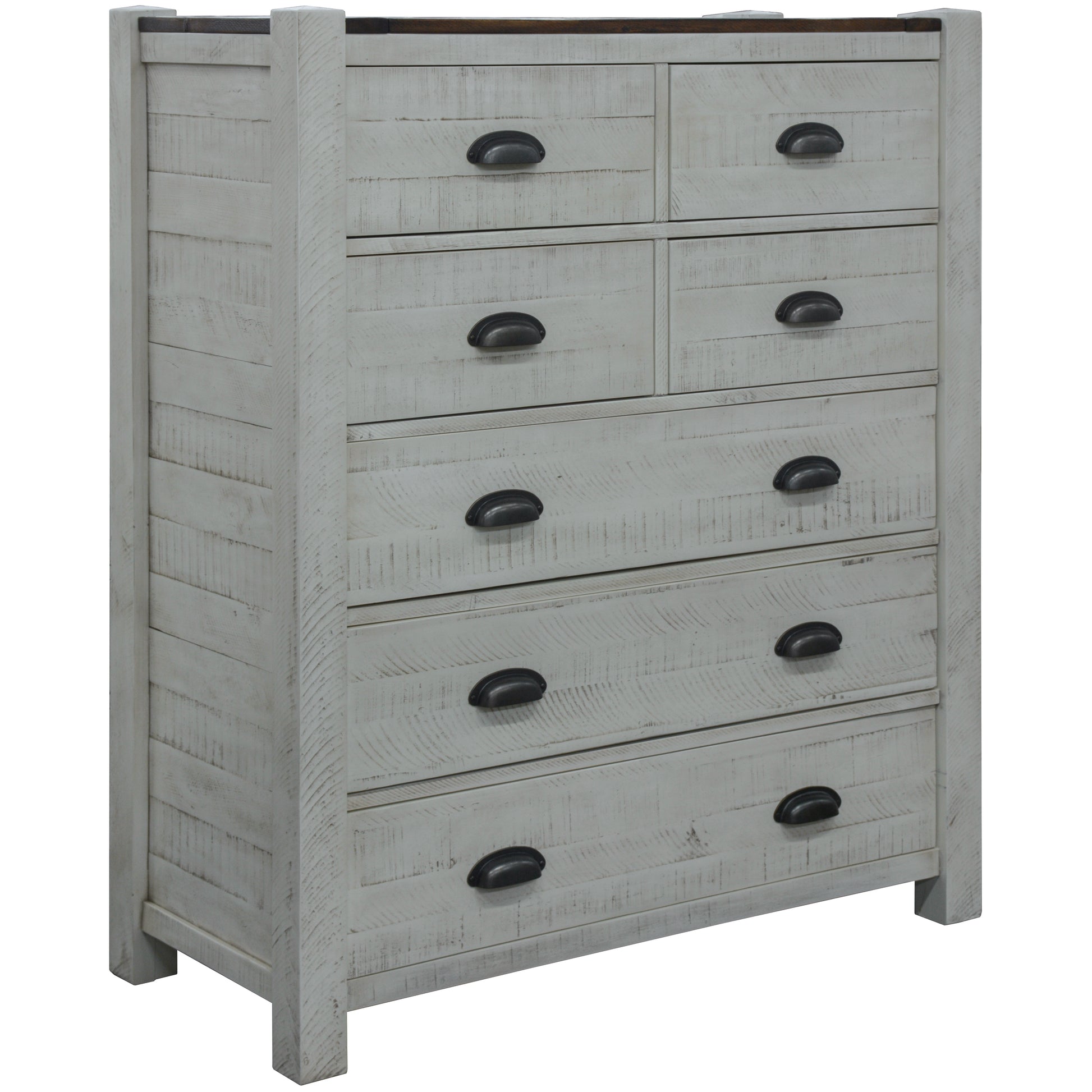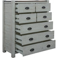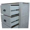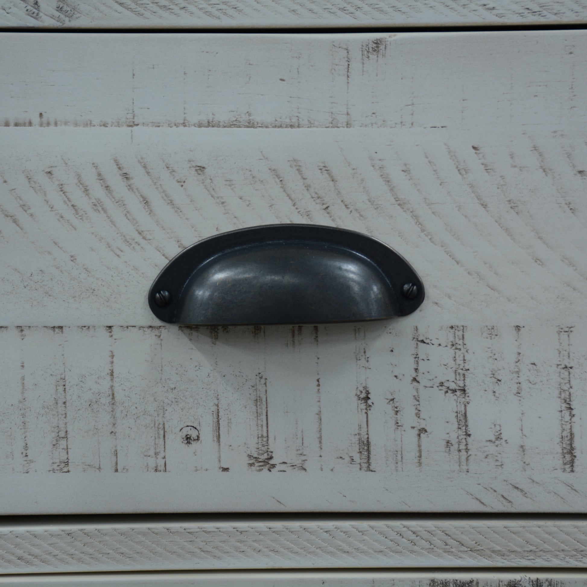 Place this beautiful tallboy in your bedroom to ensure your comfort and happiness. The tallboy, beautifully designed in the Hampton style, will make your life easier and happier. It improves storage space in your bedroom and gives it a clean appearance. The tallboy has a rich look as it features a two-tone colour palette in a rough sawn finish. It also has massive storage space in the form of 7 sizable drawers - 3 large and 4 small drawers, all with full-extension metal runners. The drawers have oval-shaped metal handles in an antique colour. It is a multi-coloured piece of furniture with a brown rustic top and a distressed almond white base. The tallboy with strong, thick legs is made of high-quality solid Acacia wood, obtained in a sustainable manner. And this makes it super-sturdy and long-lasting. The fully assembled tallboy comes with a one-year warranty.