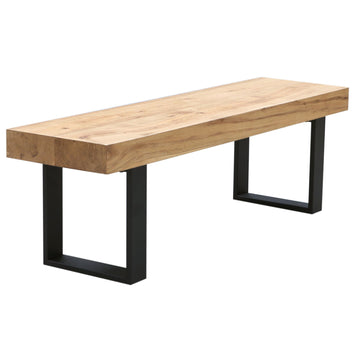 This sleek beautiful seating bench has all the qualities to become the central attraction of your dining area. The 3-seater bench, designed in the industrial style, has a robust, 9-cm-thick top and metal legs in a classic closed design. The bench is made of sustainably harvested solid and veneer oak with natural grain patterns that give it a natural beauty. Painted in a natural finish, the top is paired with powder-coated matt black legs. The elegant bench has a one-of-a-kind design with a top and legs in different colours and styles. A one-year warranty is included with the simple-to-assemble bench.