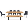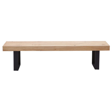 Ethan 190cm Dining Table Bench Seat Veneer Solid Oak Top Metal Leg - Natural