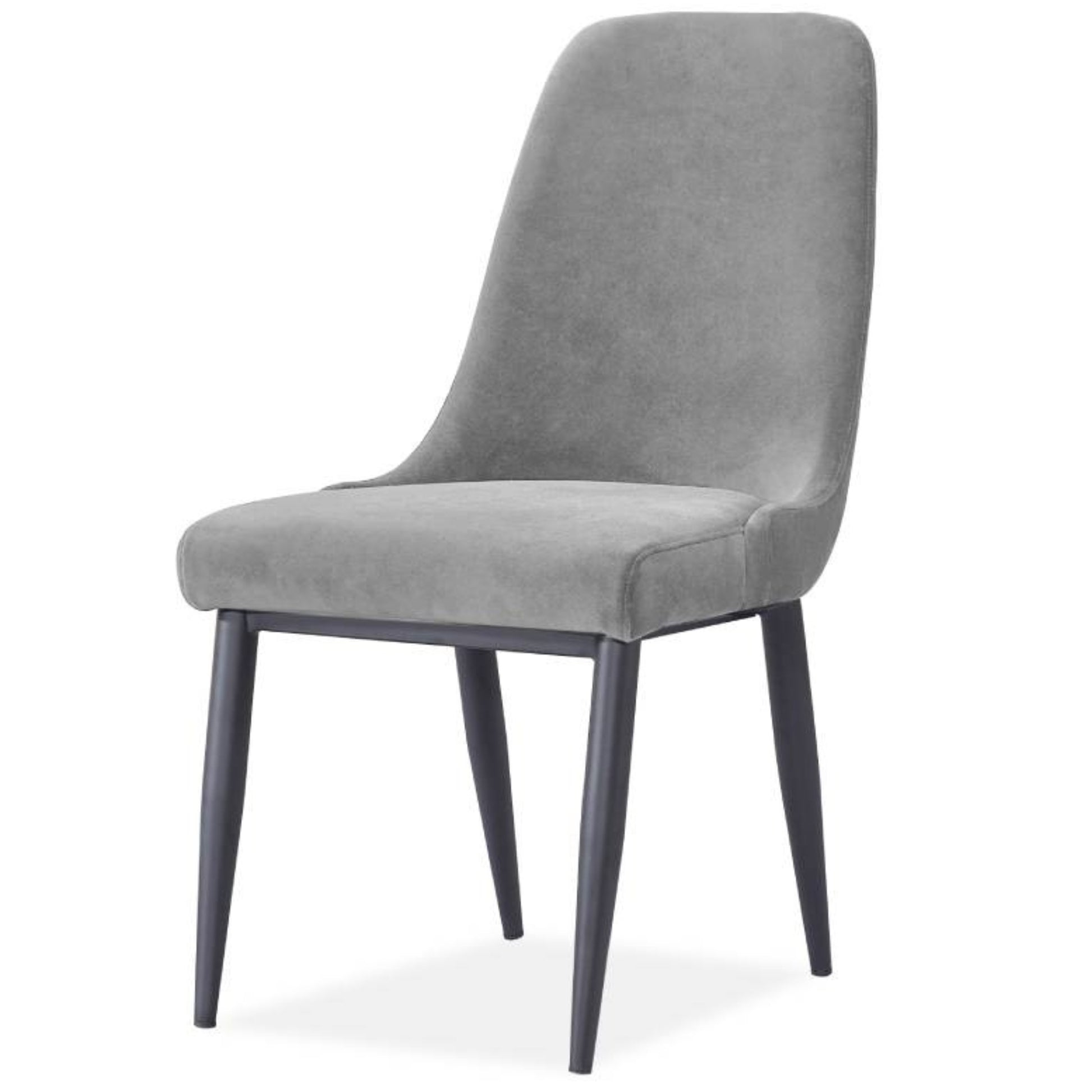 Make your dining area supper comfortable and stylish with this set of 8-piece dining chairs. Designed in the Mid-Century style, the chairs are upholstered in Roma velvet fabric and has strong, tapered, black legs made of black powder-coated steel. A soft back makes it even more comfortable, giving it a unique look. The chairs look stunning in all decor settings, thanks to their inviting shape and grey-coloured fabric upholstery. A metal frame gives them great strength. A one-year warranty is included with the fully assembled chairs.