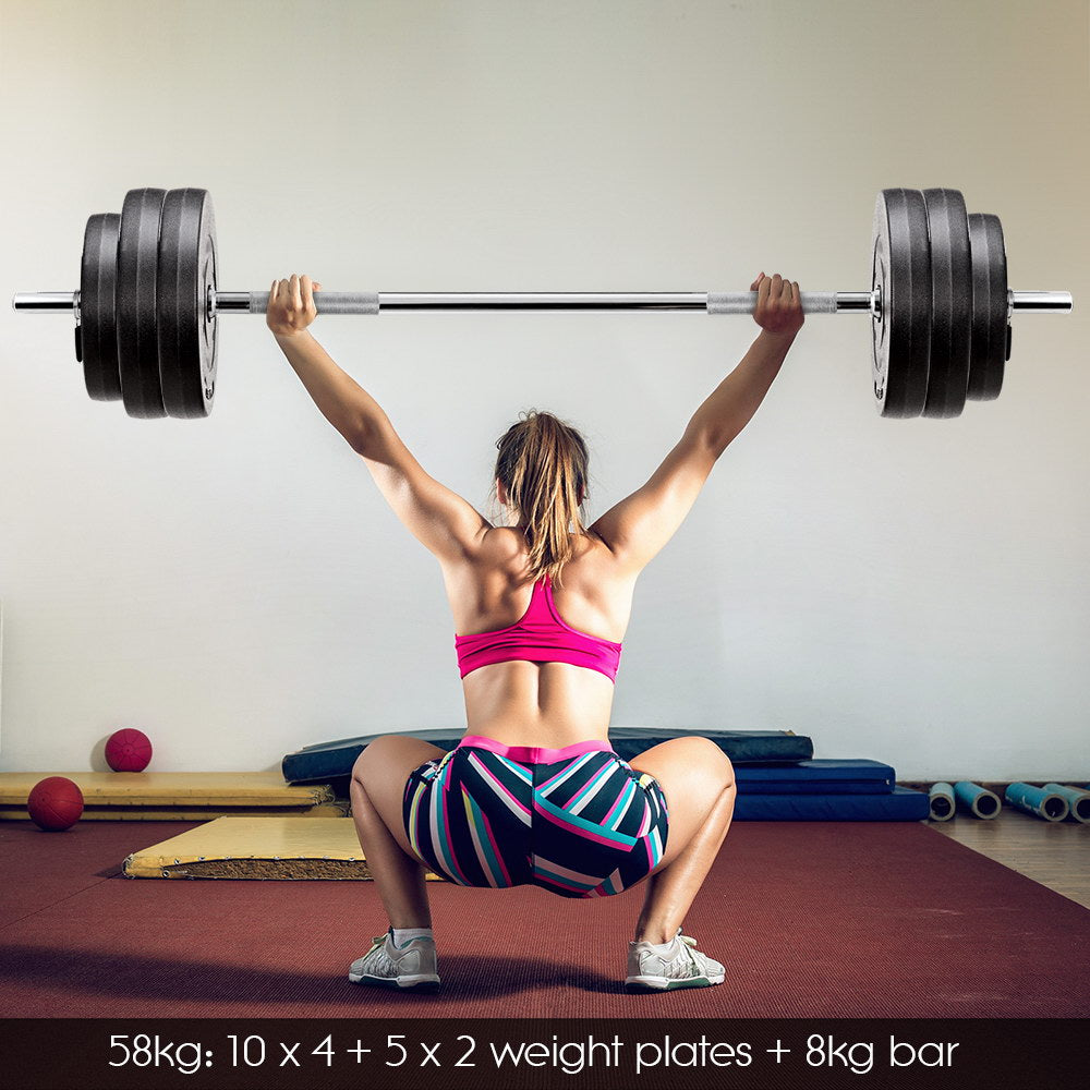 Everfit Multi-Station Weight Bench Press Fitness 58KG Barbell Set Incline Black
