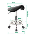 This Saddle style 360 degree swivel Black Premium PU Leather Hydraulic Rolling Stool is perfect for your home, massage practice, hair salon and many more applications!