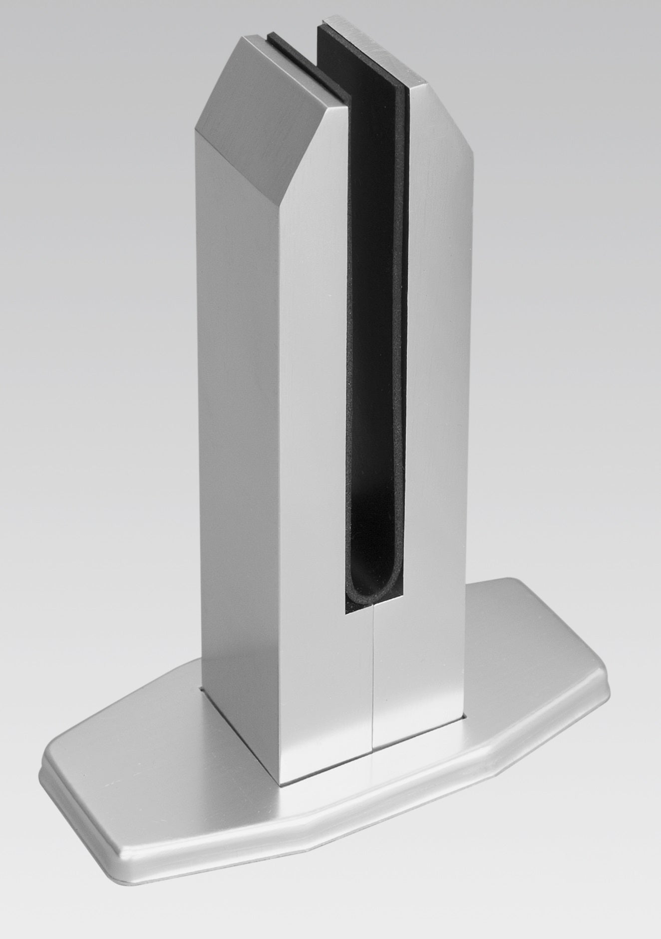 This durable, weather-resistant spigot is made from a high quality anodised aluminum alloy. It measures 132 x 60 mm (L x W), with bolt holes measuring 16 x 13 mm. The spigot is designed expressly for the do-it-yourselfer, and no holes are required in the glass. The glass is gripped by the rubber grip sleeve which lines the interior of the spigot. Installation is easy, and an allen key as well as a cover plate for the bolts are included.