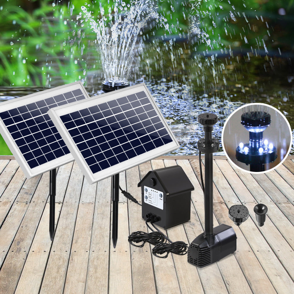 Gardeon 110W LED Lights Solar Fountain with Battery Outdoor Fountains Submersible Water Pump