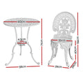 Gardeon 3PC Patio Furniture Outdoor Bistro Set Dining Chairs Aluminium White
