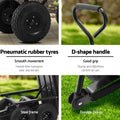 The dump cart can transport a variety of loads such as soils, plants, timber, pebbles, tools and more. It is made with a ultra durable and rust resistant material that can hold up to 270kg worth of materials. It is built with a unique dumping function; simply pull the spring loaded dumper release locking handle and you can tip the bed up to 85 degrees. Additionally, the cart features a sturdy D shaped handle for good grip and effortless handling.