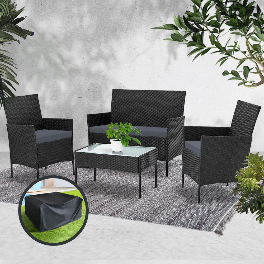 Gardeon Garden Furniture Outdoor Lounge Setting Wicker Sofa Patio Storage Cover Black
