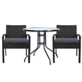 Gardeon Outdoor Furniture Dining Chairs Wicker Garden Patio Cushion Black 3PCS Sofa Set Tea Coffee Cafe Bar Set