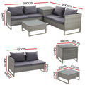 Looking to create a chic and gorgeous outdoor setting? The Gardeon 4-piece wicker outdoor set is a must purchase. It will liven up your outdoor space and help you achieve an elegant space where you can enjoy day and night and summer and winter. The set comprises of two sofas, a corner table, and a matching centre table. Its beautiful and versatile design makes it perfect for indoor and outdoor use. This outdoor set features a lovely wicker weave for a touch of tropical charm, and the UV-resistant PE wicker with galvanised steel frame is suitable for all-season use. Its customisable design allows you to style this outdoor sofa set in multiple ways. The tempered glass tabletop and solid structure ensures strength and durability. The corner table with durable hinges and gas-spring design has sufficient storage space underneath to store your pillows and other essentials. Our outdoor wicker sofa set also comes with removable cushions that allows you to go cushion-less to suit different seasons, and the polyester covers are easy to keep clean. The pillows are also comfortable and soft for a comfortable sitting. This wicker outdoor set will withstand the test of time. You can create a praise-worthy spot with just a little creativity that will wow your guests. Shop it for your home today.