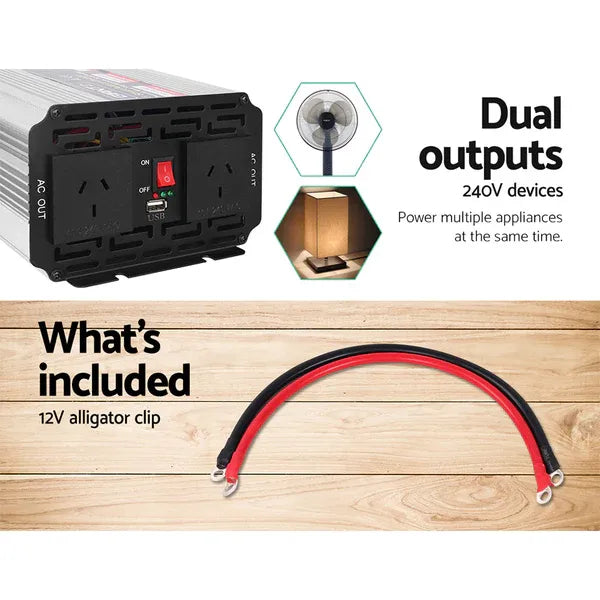 Giantz Power Inverter 1000W or 2000W Pure Sine Wave 12V-240V Camping Boat Caravan