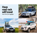 Travel further and longer with the Giantz Roof Luggage Rack. By adding more load carrying space and capacity to your vehicle, the rack enables you to take off for those distant road trips without minimum hassle. Made of high-quality powder-coated steel, the rack is strong and durable and also weatherproof. It has a weight capacity of up to 80kg. The mesh base also allows you to tie down your loads easily and firmly. Better still, the wind deflector helps to cut down wind resistance, thus saving you on fuel costs too. With its universal design, the roof rack will fit with most vehicles. Included with your purchase are all the assembly hardware with no tools needed for an easy set-up.