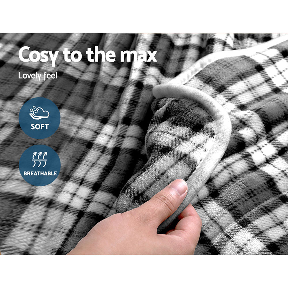Giselle Bedding Electric Throw Rug Flannel Snuggle Blanket Washable Heated Grey and White Checkered