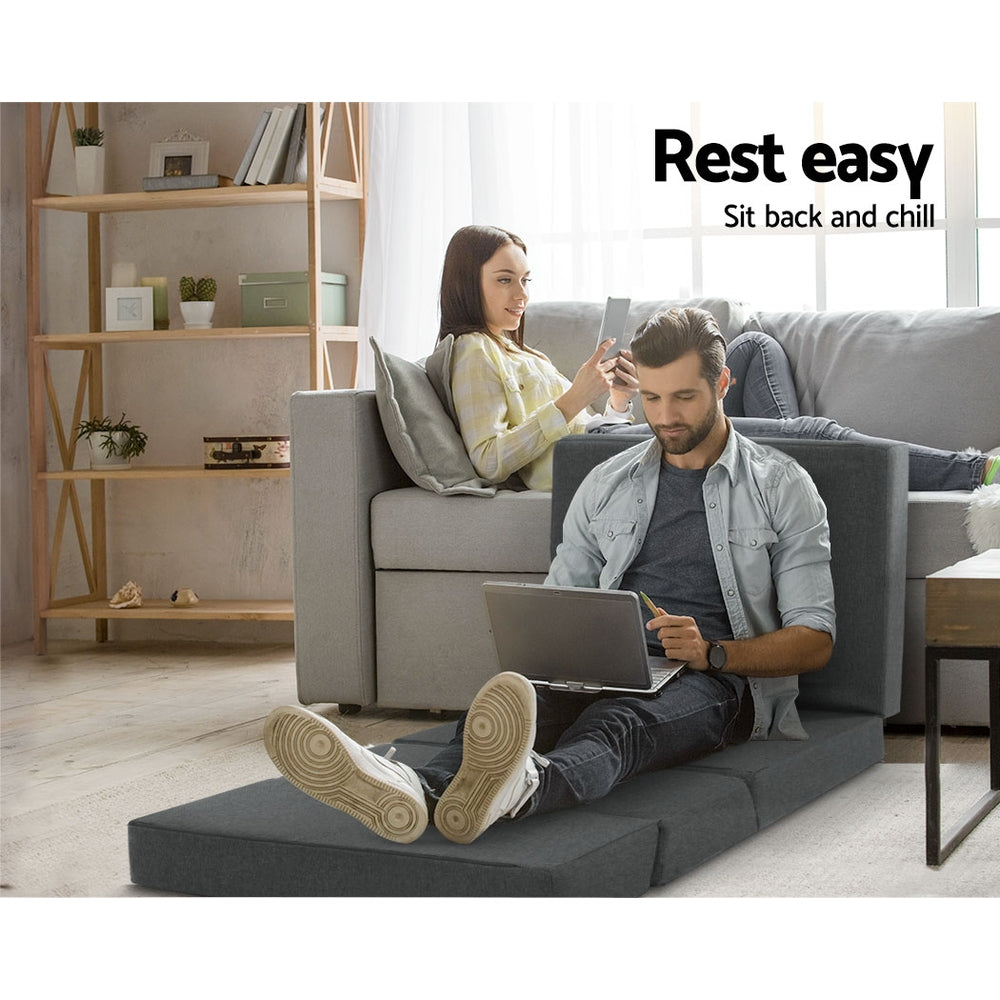 A couch by day, a bed by night. Convertible in use, our Giselle Bedding Folding Foam Mattress is great to have in any home. It is foldable and can easily be stored away or used as an extra couch during the day. Then when the sun begins to set, you can let it unfold to become a comfortable instant bed for sleepovers or unexpected guests. The mattress would also be perfect for places such as tiny city apartments and residential colleges and where there is limited space for large sofas and beds. Or to feel at home while you are out and about, such as during camping and road trips. And the mattress is not only versatile, but reliable. Its premium wear-resistant faux linen fabric cover is soft and breathable, while the high-density foam provides adequate support all round. Best of all, the cover is removable and washable for easy cleaning and maintenance.