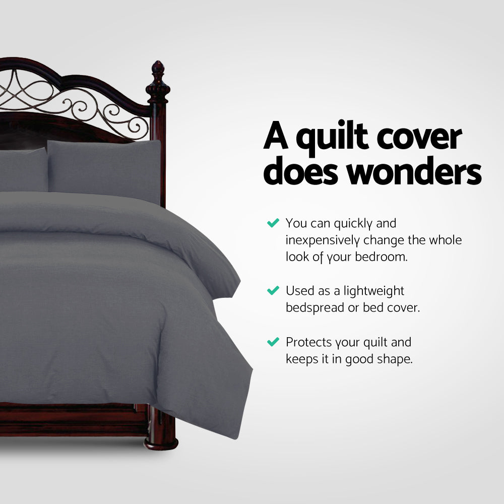 Giselle Bedding King Size Classic Quilt Cover Set - Charcoal