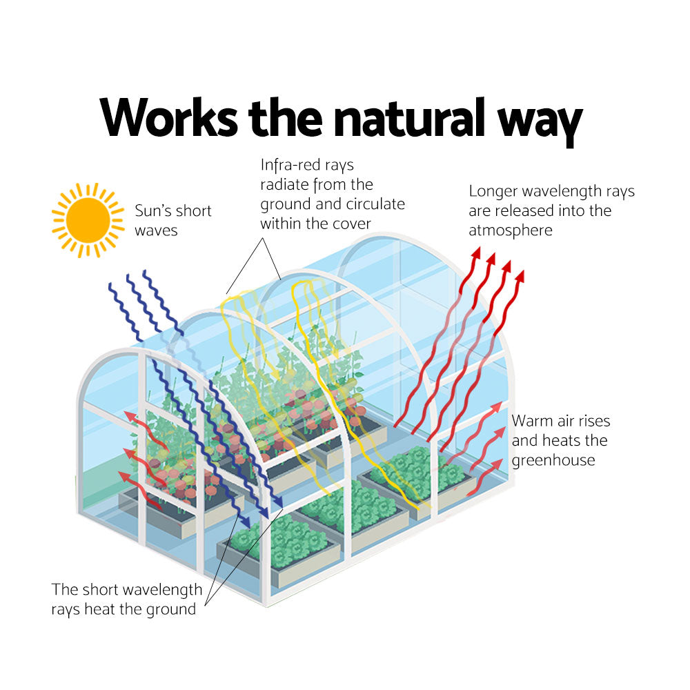 Looking for a good and reliable greenhouse cover? Look no further than our Green Fingers Greenhouse Cover. Made of high-density polyethylene, the cover is designed to optimise growth for your plants and trees by providing a consistent and constant temperature. The cover has a double PE coating protection with a silver surface that reflects heat. UV-resistant and waterproof, the cover comes with reinforced edges and corners to ensure durability and strength.