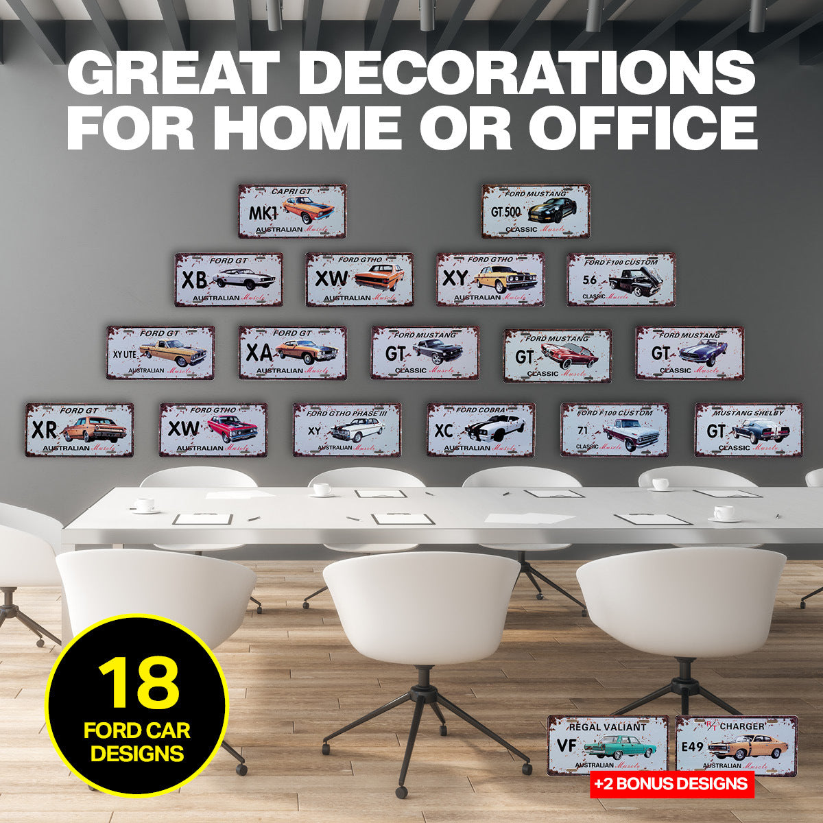 Handy Hardware 18PCE Vintage Aussie Muscle Car Plate Signs Ford 15cm x 30cm + 2 Bonus Plates