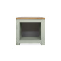 Home Master� With a flawless two tone design of oak and neutral green, this unique side table boasts a spacious shelving base. Ideal for decorative items, books or magazines. With smooth and sturdy panelling, clean lines and an impressive finish this is a stylish and timeless side table that is sure to compliment your home.