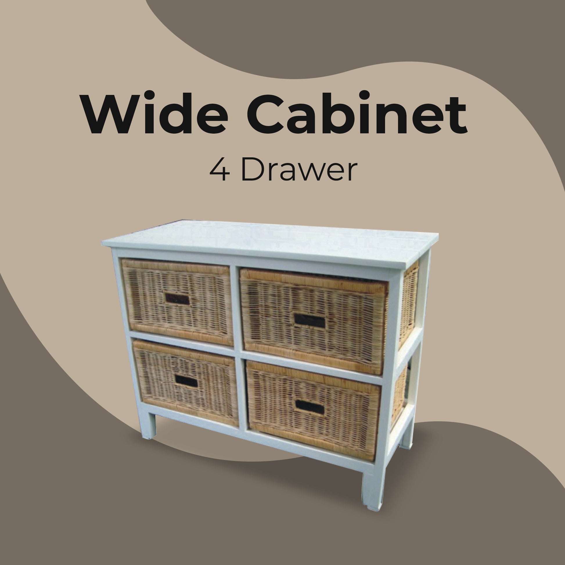 Hyssop Tallboy Wide 4 Chest of Drawers Cane Bedroom Kitchen Bathroom Storage
