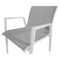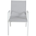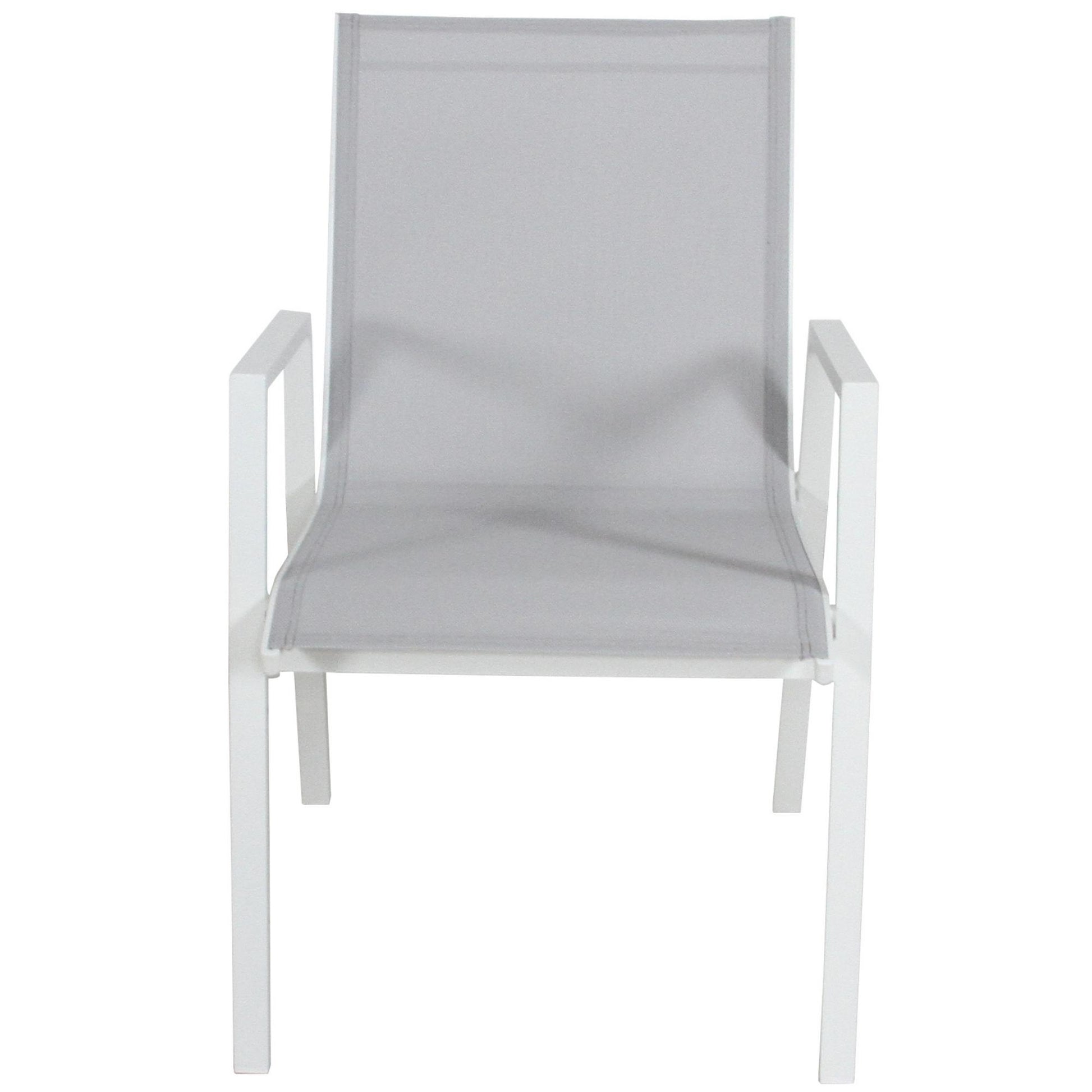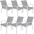 This is a beautiful 6-piece set of all-weather dining chairs that are just perfect for outdoor settings. Made of low-maintenance, non-rusting aluminium frame with a powder-coated finish, the chairs make the outdoor dining experience trouble-free. The metal frame ensures the strength and durability of the chairs for years to come. The chairs are designed in a contemporary coastal style that look pretty in an open-air dining setting and they exude a serene feel in the atmosphere. The best part is these are stackable chairs with textilene covers that match with any style of outdoor dining table. The strong chairs have a white frame with light grey textilene. They have comfortable back and lumbar support with great durability. The frame of the dining chair comes with a 1-year warranty, and textilene comes with a one-year warranty.