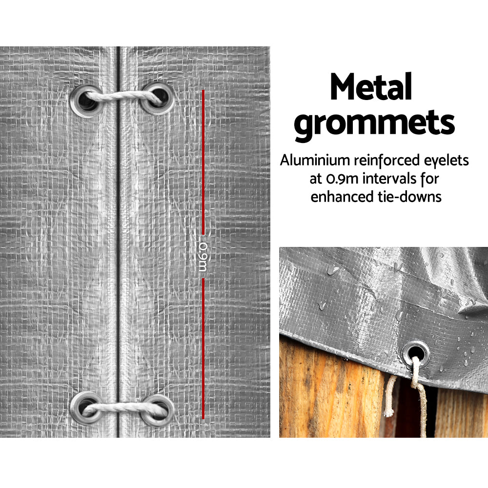 Instahut 3x3.6m Tarp Camping Tarps Poly Tarpaulin Heavy Duty Cover 180gsm Silver