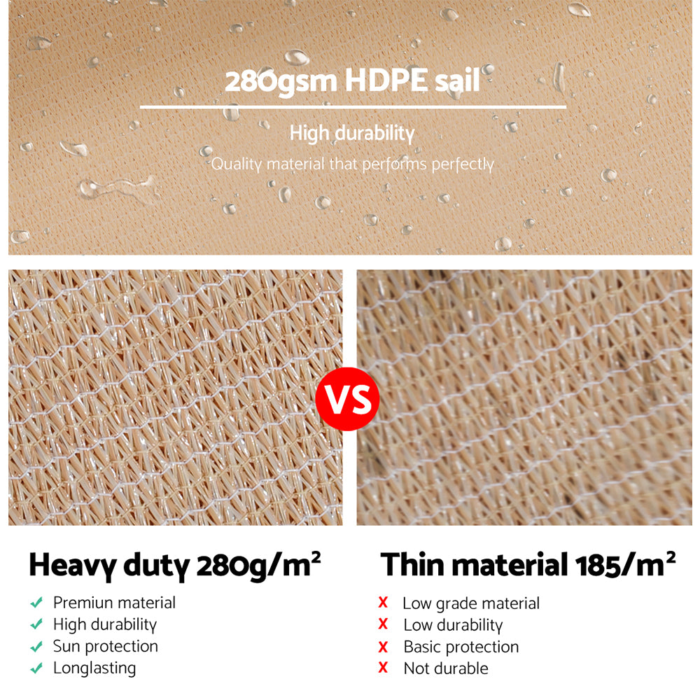 Designed to be a permanent covering, our Shade Sail is made from highly breathable 280g/m2 commercial grade 100% polyethylene fabric. This allows cooling air to pass through and help keep the under shade areas well ventilated. The material also blocks up to 98% of harmful UV rays and is all-weather proof to suit Australian climatic conditions. Plus, the material is further enhanced with Americhem UV-resistant additive from the USA to prolong its UV protection effectiveness.