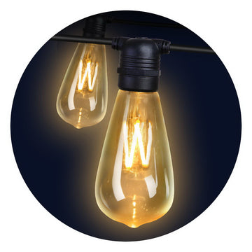 Our Jingle Jollys Festoon String Lights are great not only for wedding and birthday parties or special events, but also for creating a warm, inviting ambience with its bright and mellow glow. Suitable for both indoor and outdoor use, its IP44 rating means that it can be used in the rain and all weather conditions. Each bulb draws a very low voltage and is placed 90cm equally apart from each other throughout its 59m length for an even distribution of illumination and brightness. Not least, the each bulb has a 20,000 hours lifespan so that you can get to use the string lights for quite a while.