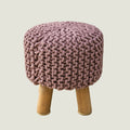 Kids Hand Knitted Cotton Braided Foot Rest Sitting Stool Ottoman (Rose Pink)