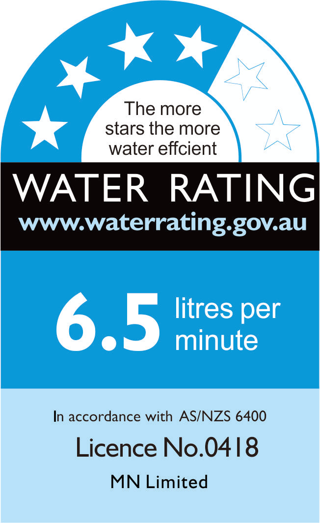 *4-star WELS rating; water efficiency of 6.5 Litres per minute