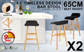 La Bella 2 Set Wooden Bar Stool 65cm Sophia Fabric Dining Chairs Kitchen - Black