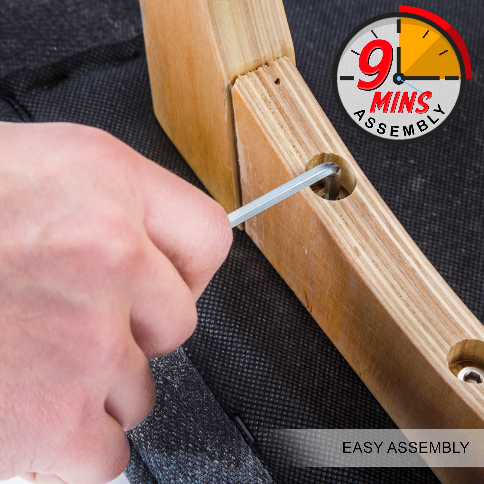 To ensure safety, the legs are tapered outwards to form a slight A-shape, so that the bar stool is well-balanced without occupying too much space. Additionally, the legs are made of solid plywood with a footrest to ensure extra sturdiness and support. This does not mean comfort is sacrificed as the seat itself is upholstered with fabric. Stool legs are also equipped with anti-slip protectors to minimise scratches onto wooden and tile floors. To give you a peace of mind, the bar stool will only take you approximately 9 minutes to assemble.