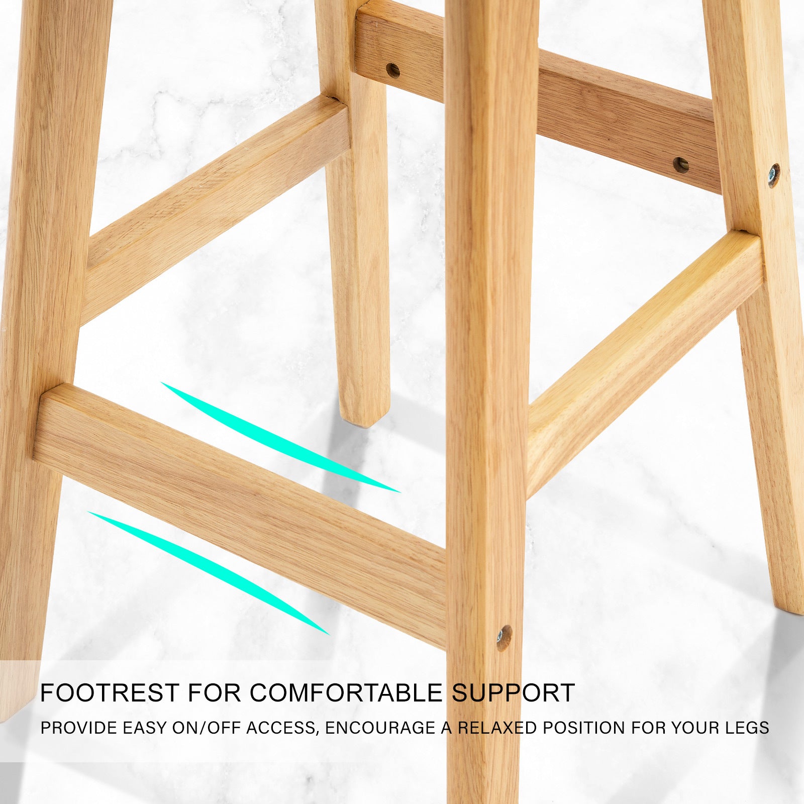 To ensure safety, the legs are tapered outwards to form a slight A-shape, so that the bar stool is well-balanced without occupying too much space. Additionally, the legs are made of solid rubberwood with a footrest to ensure extra sturdiness and support. This does not mean comfort is sacrificed as the seat itself is upholstered with fabric. Stool legs are also equipped with anti-slip protectors to minimise scratches onto wooden and tile floors. To give you a peace of mind, the bar stool will only take you approximately 9 minutes to assemble.