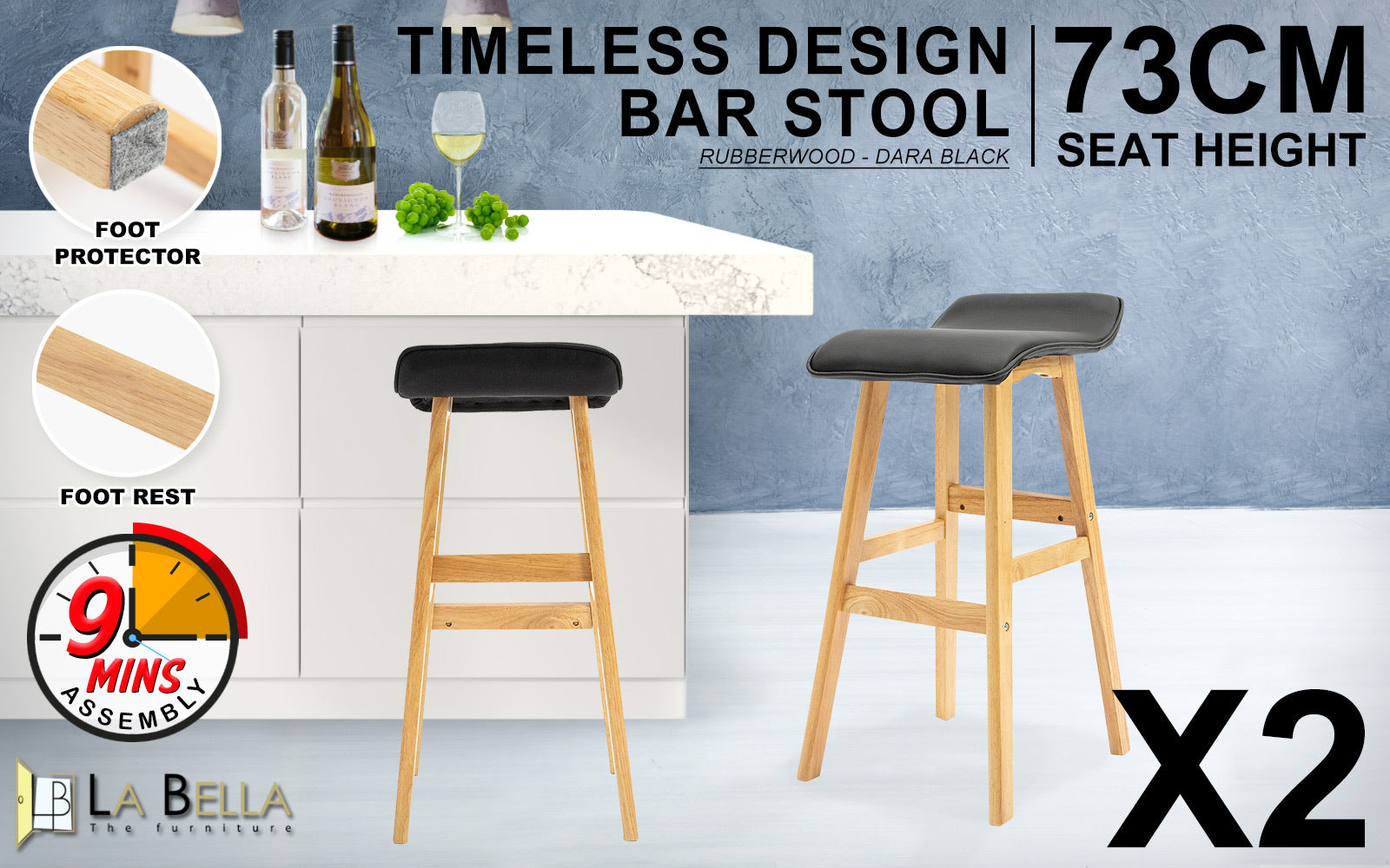 La Bella 2 Set Wooden Bar Stool 73cm Dara Leather Dining Chairs Kitchen - Black