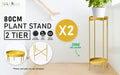 La Bella 2 Set 80cm Gold Plant Stand Planter Shelf Rack 2 Tier Steel