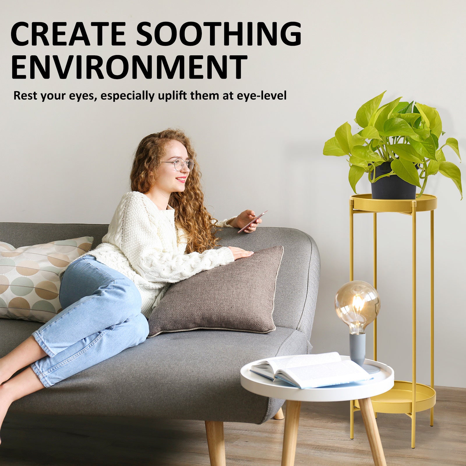 The design is space-saving by adding a certain height, not only bringing the green closer to soothe your eyes but also fills and decorates the space. It is portable to be carried around to any room to brighten up any dull corners.