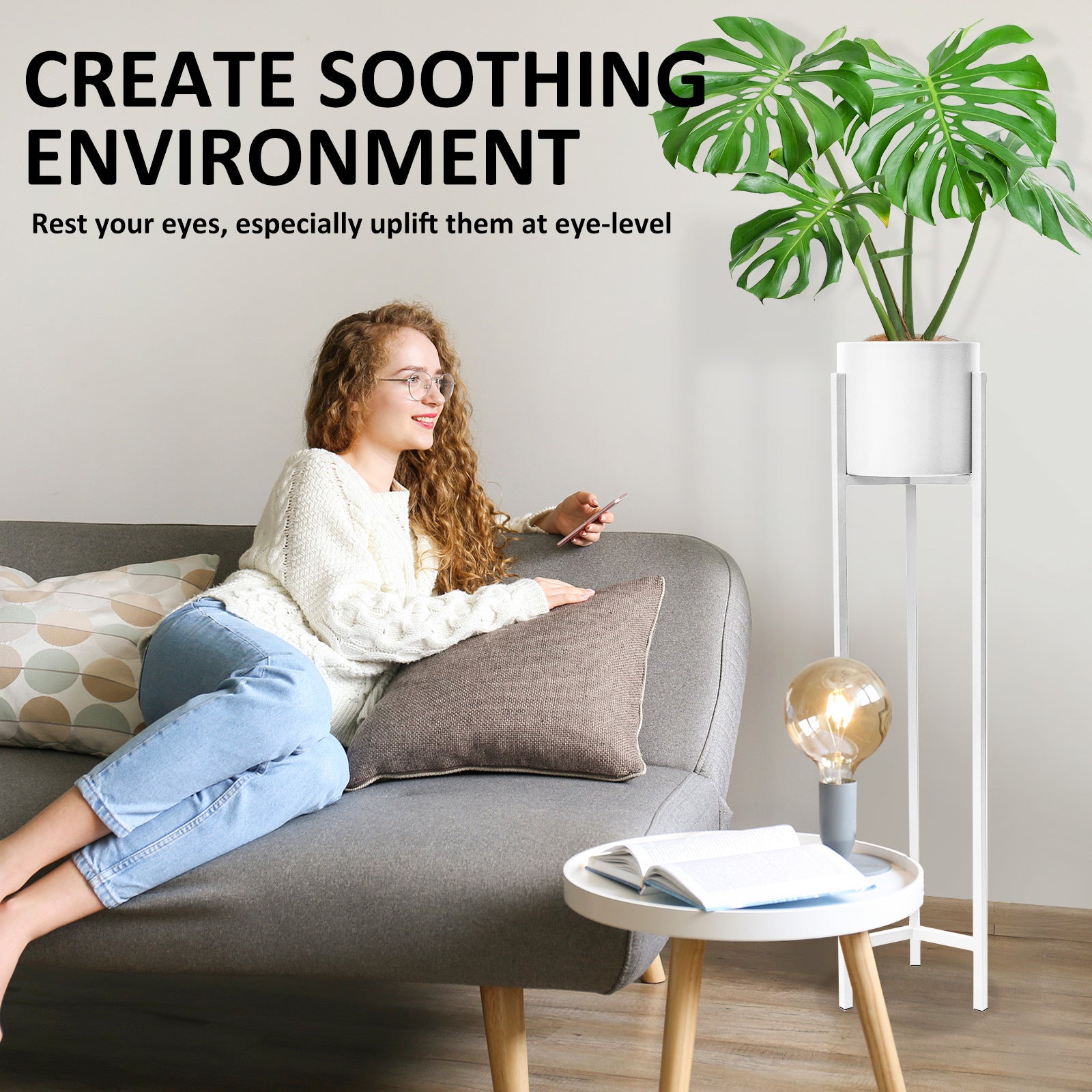 The design is space-saving by adding a certain height, not only bringing the green closer to soothe your eyes but also fills and decorates the space. It is portable to be carried around to any room to brighten up any dull corners.