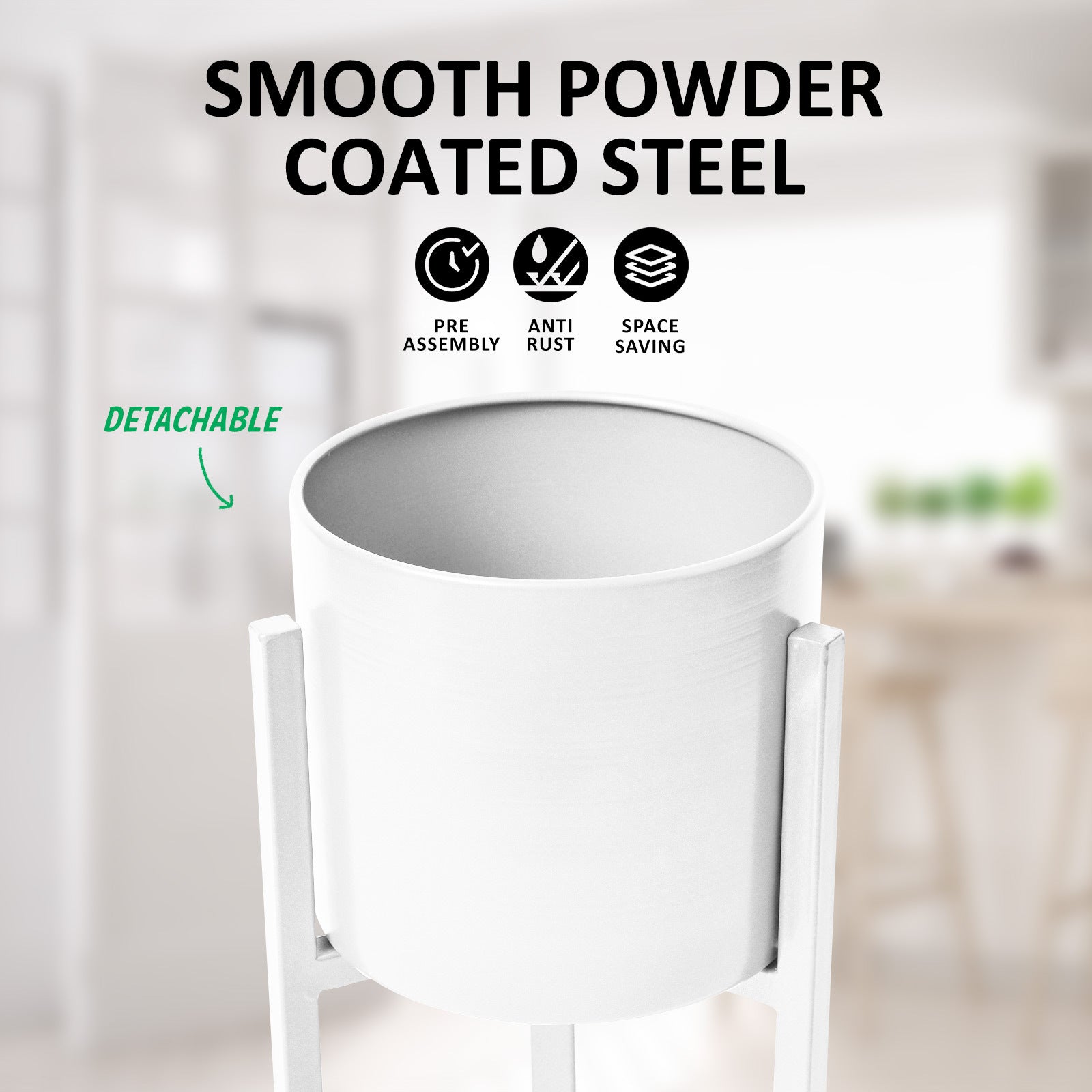 The whole construction is well-balanced without occupying much space. More than that, the stand can hold up generous weight which suits most of the plants, such as herbs, succulents, exotic plants. The anti-slip floor protectors at the bottom of the legs minimise scratches on floors and maximise its stability.