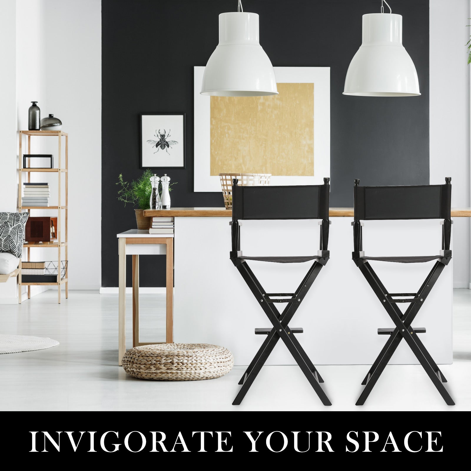 La Bella 2 Set Folding Tall Chair DARK HUMOR Movie Director 75cm - Black