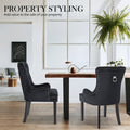 La Bella 2 Set Black French Provincial Dining Chair Ring Studded Lisse Velvet Rubberwood